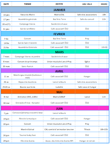 Lancé est un village qui peut s'enorgueillir d'un tissu associatif extrêmement riche et représentatif de sa population. Avec pas moins de 10 associations, c'est le signe de la très forte implication des lancéens et des bénévoles dans la vie de leur village. N'hésitez pas à consulter l'agenda ci-dessus qui offre un panel des animations tout au long de l'année pour le bonheur de tous, petits et grands !